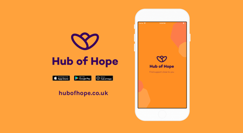 Wherever you are, the Hub of Hope app then pinpoints your location and reveals the nearest places for help and the right people to speak to. Click on the image to download the app.